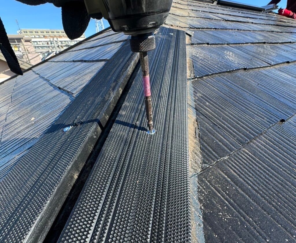 屋根の最も高い位置にある棟板金は、屋根材の接合部を雨水の浸入から守る重要な役割を担っています。しかし、常に風雨や紫外線に晒されるため、経年劣化が進みやすい箇所でもあります。